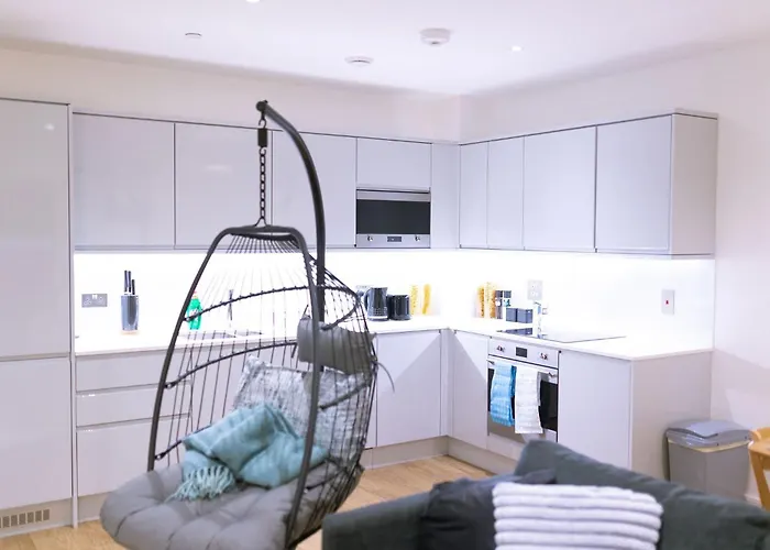 Ausgestattet mit einem Herd und einem Geschirrspüler, ist einer voll ausgestatteten Küche verfügbar. Das Apartment liegt in einer Entfernung von 3 km vom Bahnhof Five Ways.